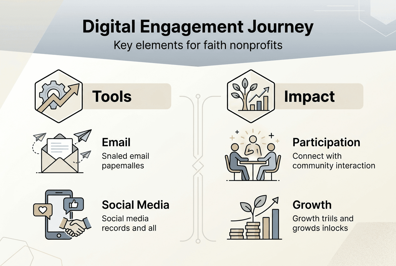 Faith nonprofits face an urgent challenge in 2026: while AI adoption has surged 80% in church operations, 73% of ministry leaders still lack formal policies to guide these tools. This gap creates confusion around digital engagement and its role in modern ministry. Digital engagement involves more than posting on social media or sending emails. It represents a comprehensive approach to building authentic relationships with your community through online platforms, and AI now plays a central role in making these connections scalable and personalized. This guide clarifies what digital engagement truly means for faith-based organizations and how AI can amplify your outreach without compromising your mission.